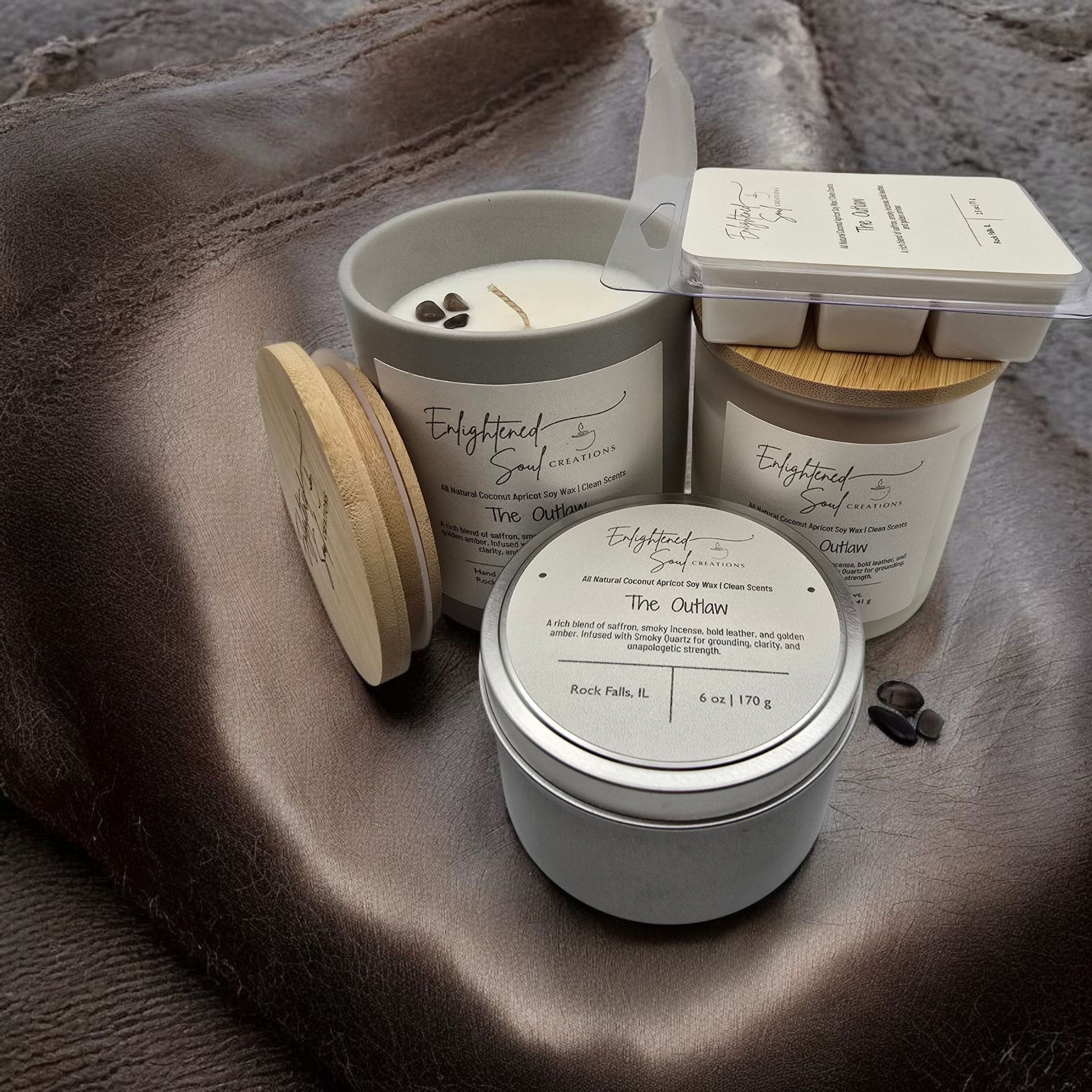 A rich blend of saffron, smoky incense, bold leather, and golden amber. Infused with Smoky Quartz for grounding, clarity, and unapologetic strength.