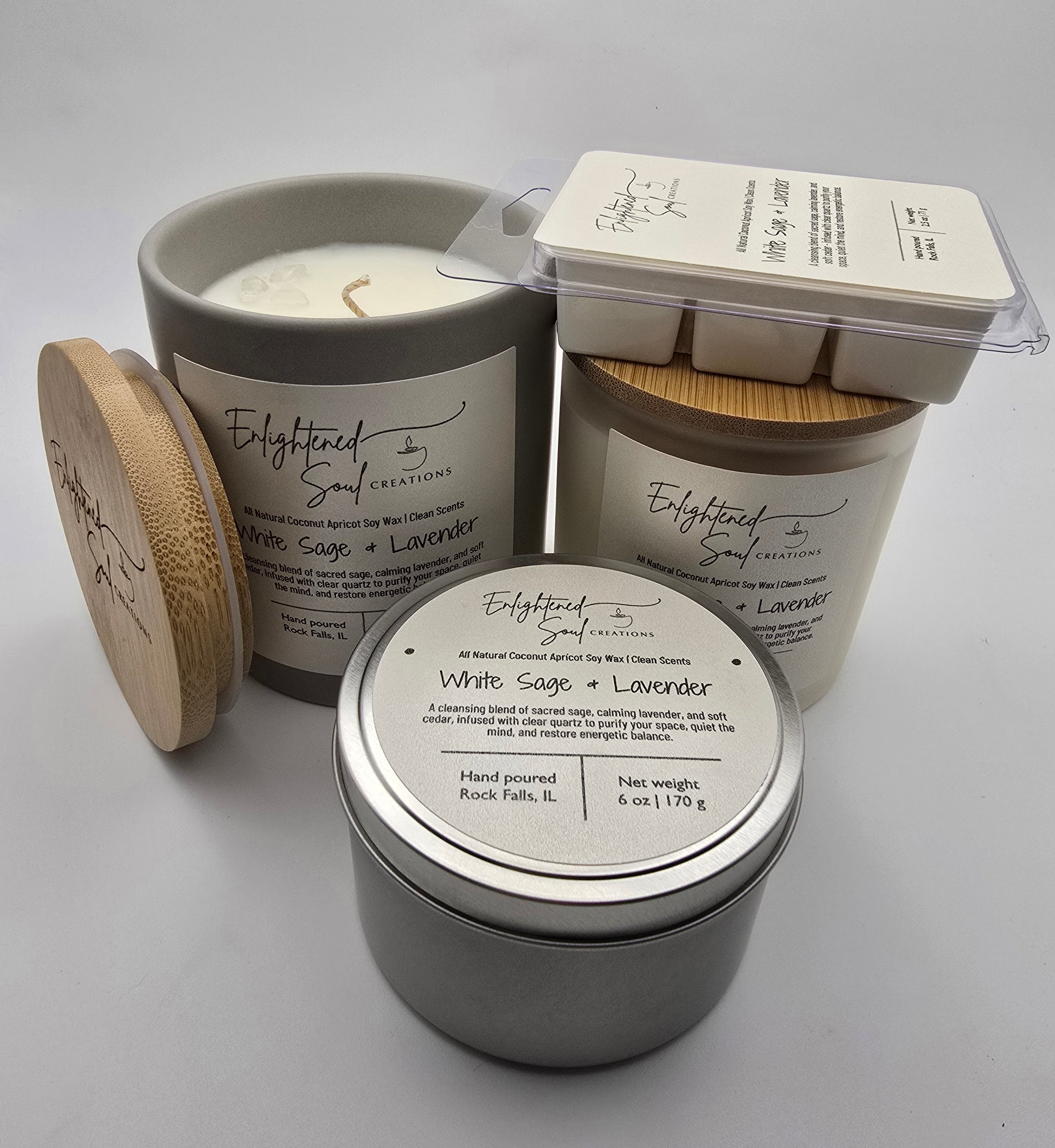 A cleansing blend of sacred sage, calming lavender, and soft cedar—infused with Clear Quartz to purify your space, quiet the mind, and restore energetic balance.
